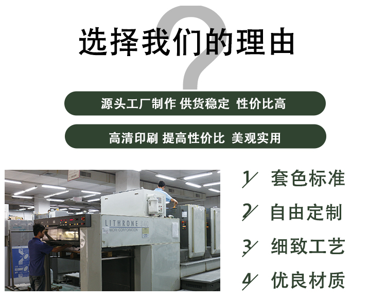1.公司從印刷到生產(chǎn)一條龍完成,質(zhì)量保證,出貨準(zhǔn)時(shí)。 2.從下訂單開始,立馬著手安排,保證在高質(zhì)量的前提下,正常包裝盒七到十天內(nèi)交貨。 3.公司規(guī)模較大(工廠工人120人,平均日產(chǎn)量高達(dá)10萬個(gè)。) 4.生產(chǎn)過程中,有獨(dú)立的品質(zhì)監(jiān)控部門,嚴(yán)密的品質(zhì)管控流程。 適用行業(yè):各行業(yè)產(chǎn)品配件包裝行業(yè)