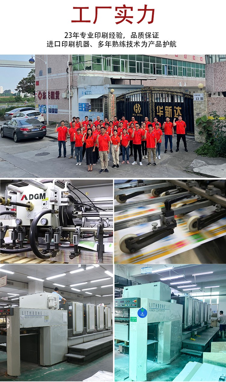 品質(zhì)把控:經(jīng)過二十幾年的沉淀積累,我司已建立完善的組織架構(gòu),從來料到出貨配套全檢,目前擁有世界先進(jìn)配套印前,印后設(shè)備,多臺(tái)德國羅蘭全開、對(duì)開羅蘭6+1、高寶162、海德堡XL105、日本小森機(jī)五色對(duì)開印刷機(jī),采用印刷前CTP色彩管理出版印刷技術(shù),配套過膠、裱坑、啤、燙,粘盒等后道設(shè)備,擁有200多名專業(yè)技術(shù)印刷團(tuán)隊(duì)。
